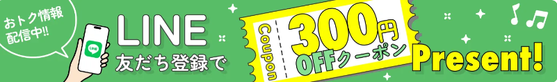 最も手軽でおすすめなのが、登録するだけですぐに使える300円OFFクーポンがプレゼントされる「公式LINEの友だち追加」です。